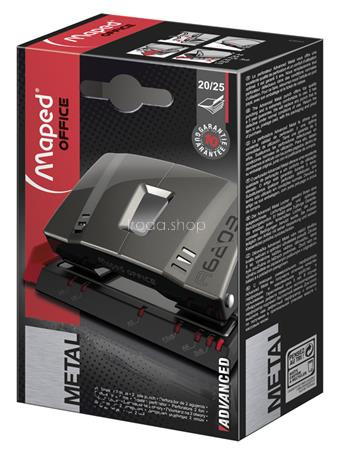 Lyukasztó, kétlyukú, 25 lap, fém, MAPED "Advanced", sötétbarna