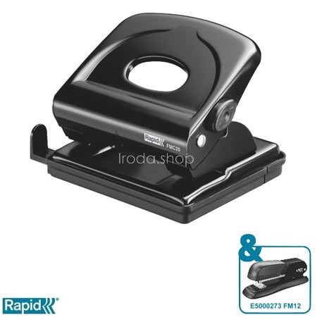 Lyukasztó, kétlyukú, 25 lap, fém, RAPID "FMC25", fekete
