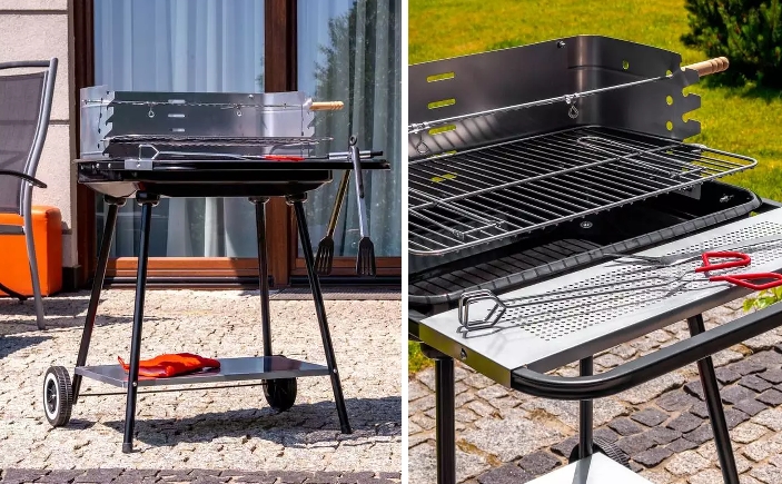 A széngrill képes beállítani a rostély magasságát, amely lehetővé teszi az ételek elkészítésének ellenőrzését és tökéletes elkészítését. Funkcionális előny az alsó és az első polc, amelyek megkönnyítik a grillezést és a praktikus kiegészítők tárolását.