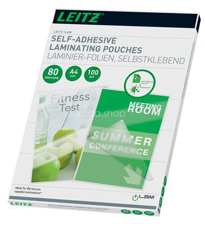 Meleglamináló fólia, 80 mikron, A4, fényes, öntapadó, LEITZ