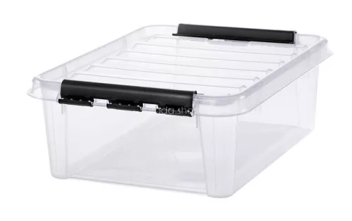 Műanyag tárolódoboz, 21 liter, fekete fogantyúkkal, SMARTSTORE "Classic 24", átlátszó