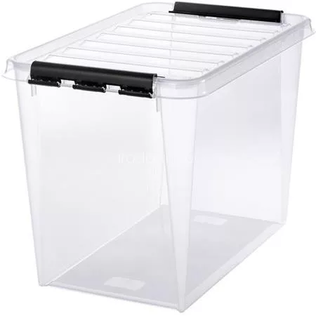 Műanyag tárolódoboz, 61 liter, fekete fogantyúkkal, SMARTSTORE "Classic 65", átlátszó
