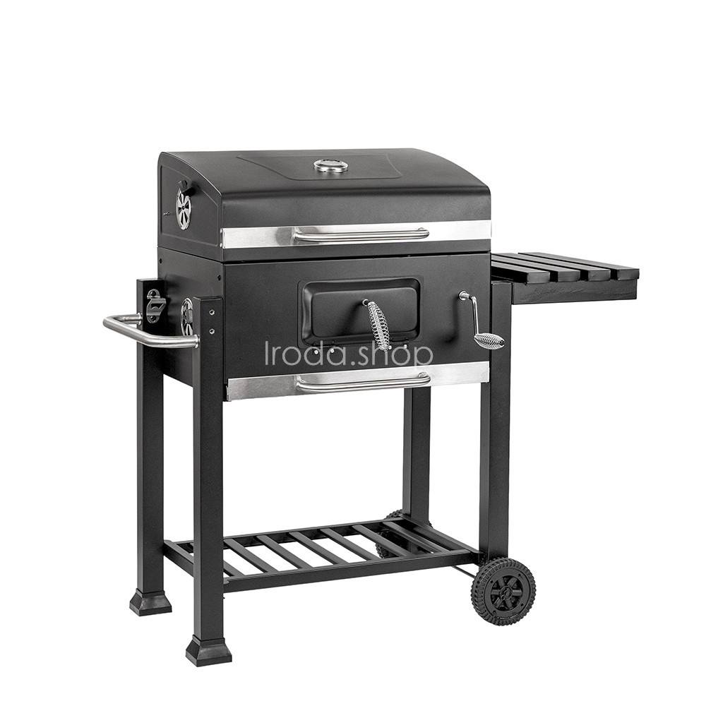 Mozgatható faszenes grill lecsukható fedéllel és görgőkkel