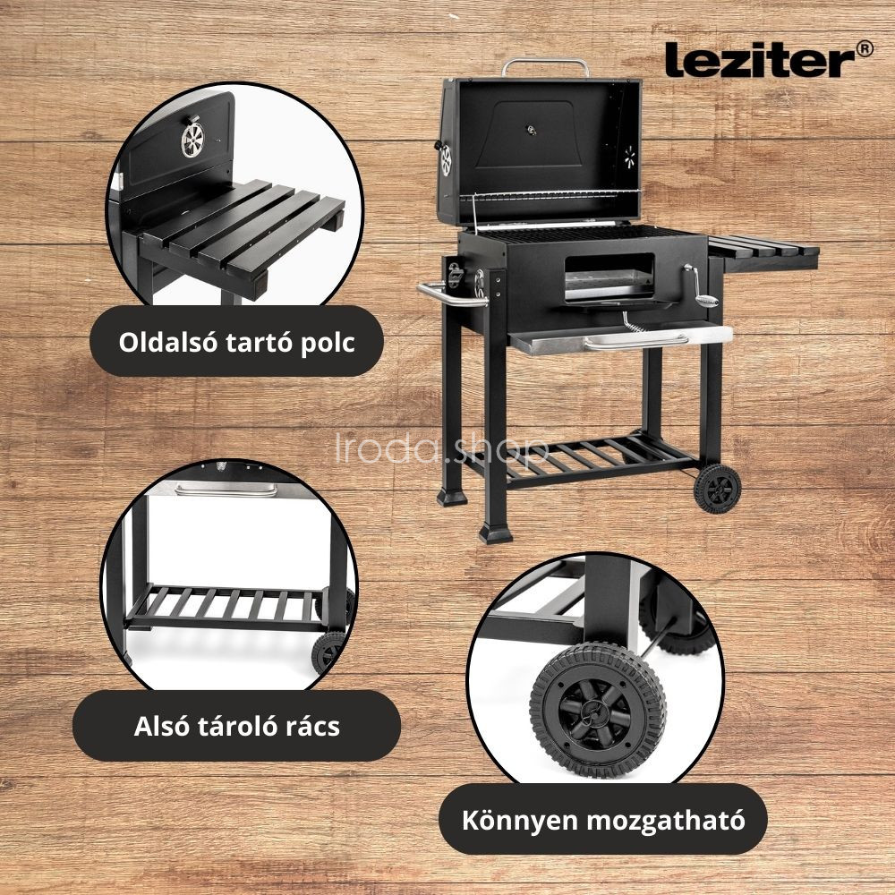 A Leziter Multifunkciós Grillsütő kialakításának köszönhetően a grillezés nemcsak egyszerűbb, de élvezetesebb is. Az oldalsó polc és az alsó tárolórács biztosítja, hogy minden szükséges eszköz kéznél legyen. A beépített hőmérő lehetővé teszi a pontos hőszabályozást, míg a lehajtható oldalsó asztalok több helyet biztosítanak az előkészítéshez, de összecsukhatók, amikor nincs rájuk szükség. A beépített üvegnyitó pedig extra kényelmet biztosít – a grillmesternek nem kell keresgélni a sörnyitót, mert mindig kéznél van.