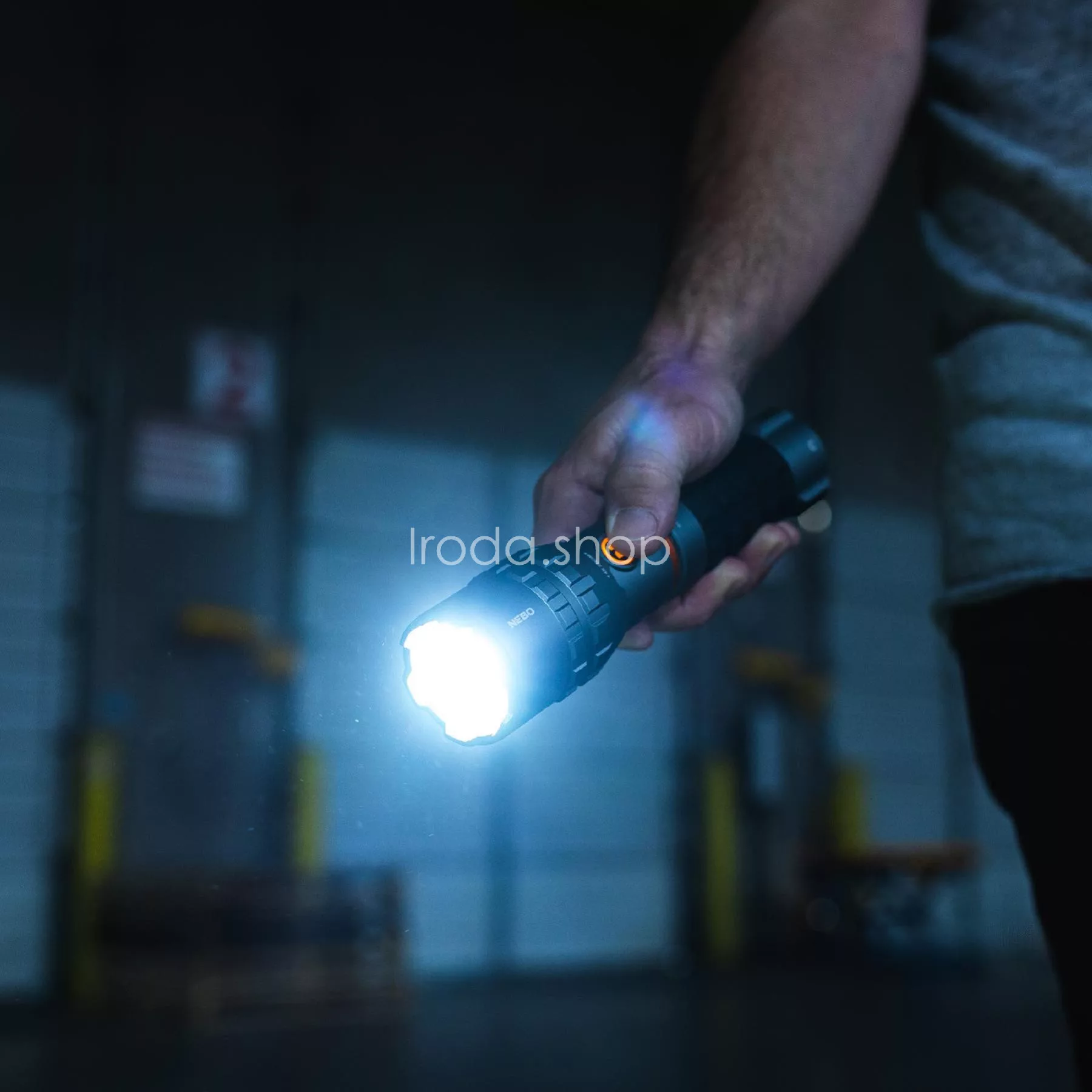 A gumírozott markolat és az eloxált repülőipari alumínium burkolat nem csupán masszív megjelenést, hanem ütésálló és vízálló (IPX7) védelmet is nyújt, így a NEBO zseblámpa minden időjárási körülményhez és munkakörnyezethez alkalmazkodik. Az erős mágneses talp biztosítja a rögzíthetőséget fémfelületeken, így mindkét keze szabad maradhat munka közben.