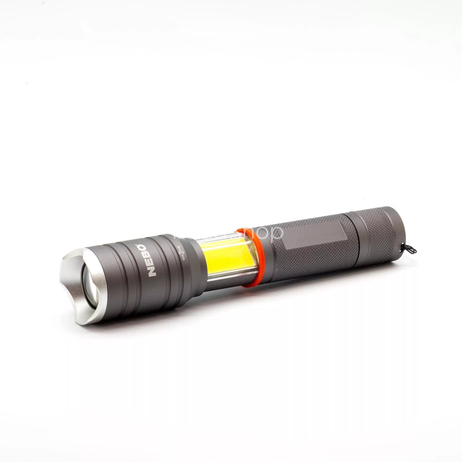NEBO NEB-6746-G TAC SLYDE zseblámpa, 300 lumen, zoom, alumínium burkolat, IPX4, 5 féle üzemmód, elemes működés