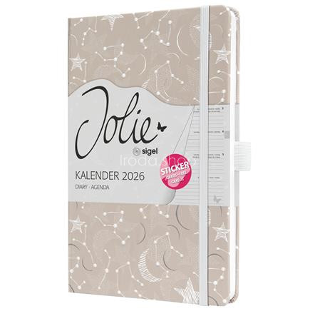 Naptár, A5, heti, 2026, kemény borító, SIGEL "Jolie", Cosmic Fantasy Beige