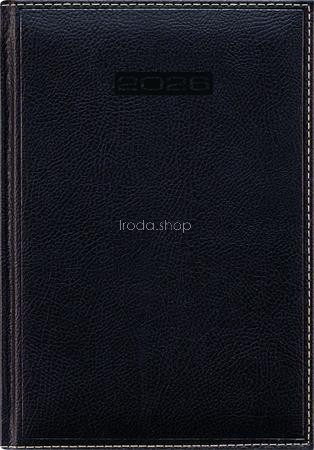 Finoman struktúrált, bőrhatású anyag felhasználásával, enyhén kontrasztos varással készült borító. A kerekített sarkok tovább erősítik az eleganciát. -matt, bőrhatású borító -időbeosztás: félórás, 8-20.00 h -lapok 70 g/m2, chamois papírból -szürke-vörös nyomat -jelzőszalaggal -sarokperforációval -Budapest és Magyarország térképpel -havi összesített naptár -éves tervező -telefonregiszter/jegyzet oldalak -hasznos információk Termékek felépítése: -személyes információk -összesített naptár -éves tervező horizontális -éves tervező vertikális -térképek -névnapok listája -nemzetközi ünnepek -születésnap, évforduló tervező -naptár odalak (névnapok, magyar ünnepnap kiemelés, napkelte és napnyugta adatok, holdállás, eltelt/hátralévő napok, napi teendők, összesített havi naptár, jegyzetrész) -jegyzet oldalak, melyek telefonregiszterként is használhatóak -hőre színeződő anyagból készült borító: vakdombor nyomás esetén különösen szép hatás érhető el -présfólia- és vaknyomással emblémázható