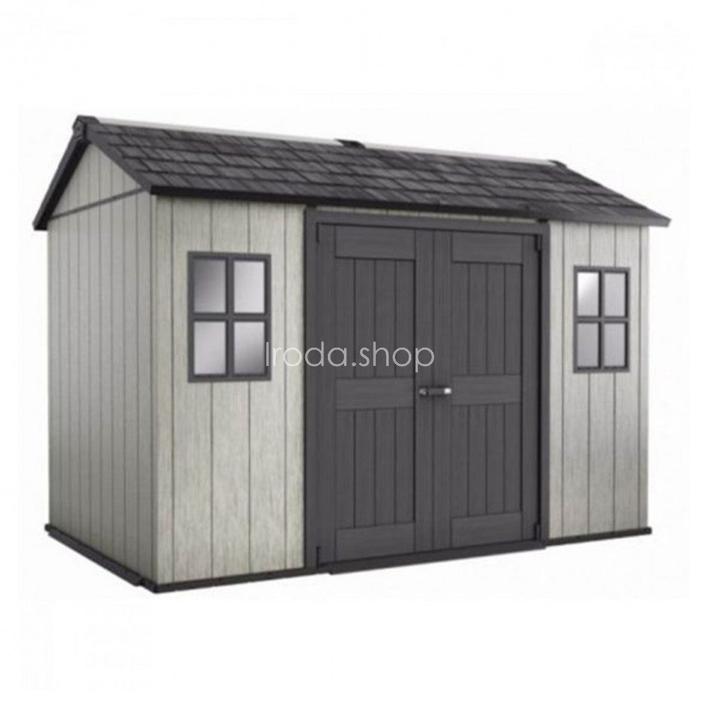 A Keter Oakland 1175 kerti ház szilárd műanyagból készül. A magassága 242 cm magas, 350 cm széles és 229 cm mély. A ház maximum fehasználási területe 6,5 m2 ! Ez a gyártó által javasolt modellek közül a legnagyobb, minden bizonnyal elfér minden benne, ami a kert szépítéséhez szükséges.