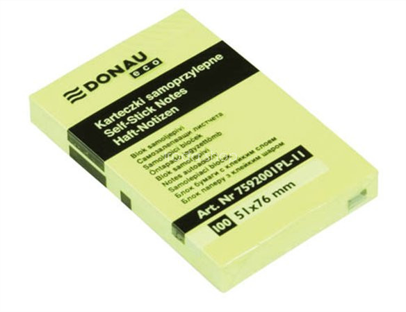 Öntapadó jegyzettömb, 51x76mm, 100 lap, DONAU "ECO", sárga
