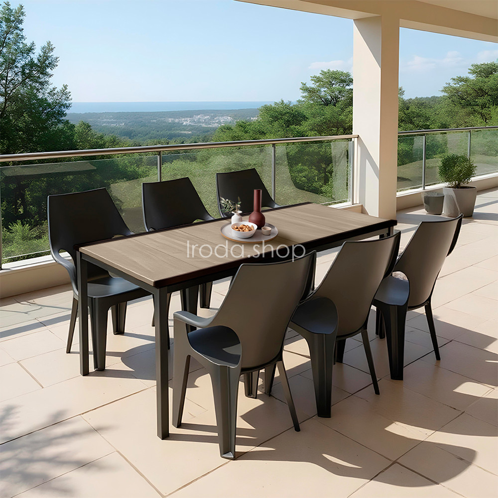 A jellegzetes, enyhén lekerekített magas háttámla és az áramvonalas kartámasz egész napos kényelmet biztosít. Ha épp nincs szükség mind a hat székre, pillanatok alatt egymásra pakolhatod őket – így egy kis erkélyen vagy tárolóban is könnyen elférnek. A teljesen műanyag váz korróziómentes, nincs festési vagy lakkozási igény, és bátran kint hagyhatod a tűző napon vagy egy záporban is.