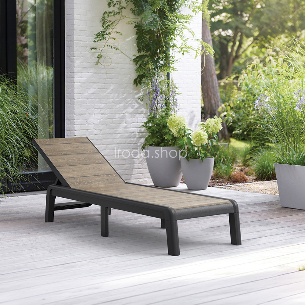 Porto műanyag kerti napozóágy párna nélkül kőrisfa-grafit