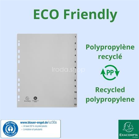 Regiszter, műanyag, A4+, 1-12, EXACOMPTA, szürke