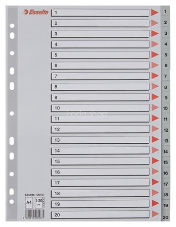 Regiszter, műanyag, A4, 1-20, ESSELTE, szürke