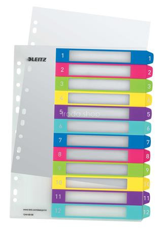 Regiszter, műanyag, A4 Maxi, 1-12, LEITZ "Wow"