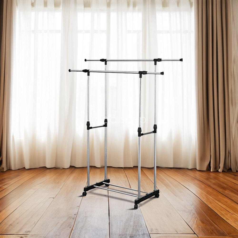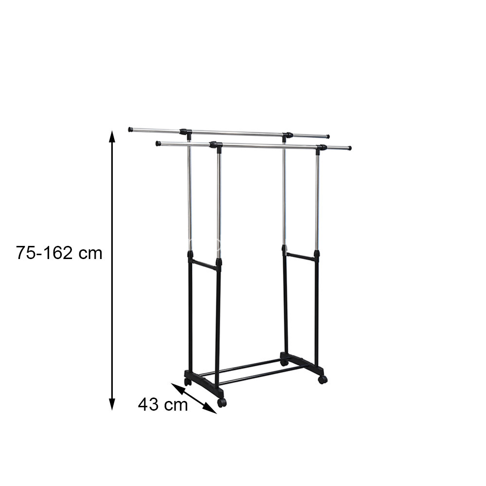 • Rugalmas használat: Az állítható magasságnak és a két szintnek köszönhetően a ruhaállvány különböző méretű ruhákhoz és kiegészítőkhöz is igazítható, legyen szó hosszú kabátokról, blúzokról vagy akár cipőkről.