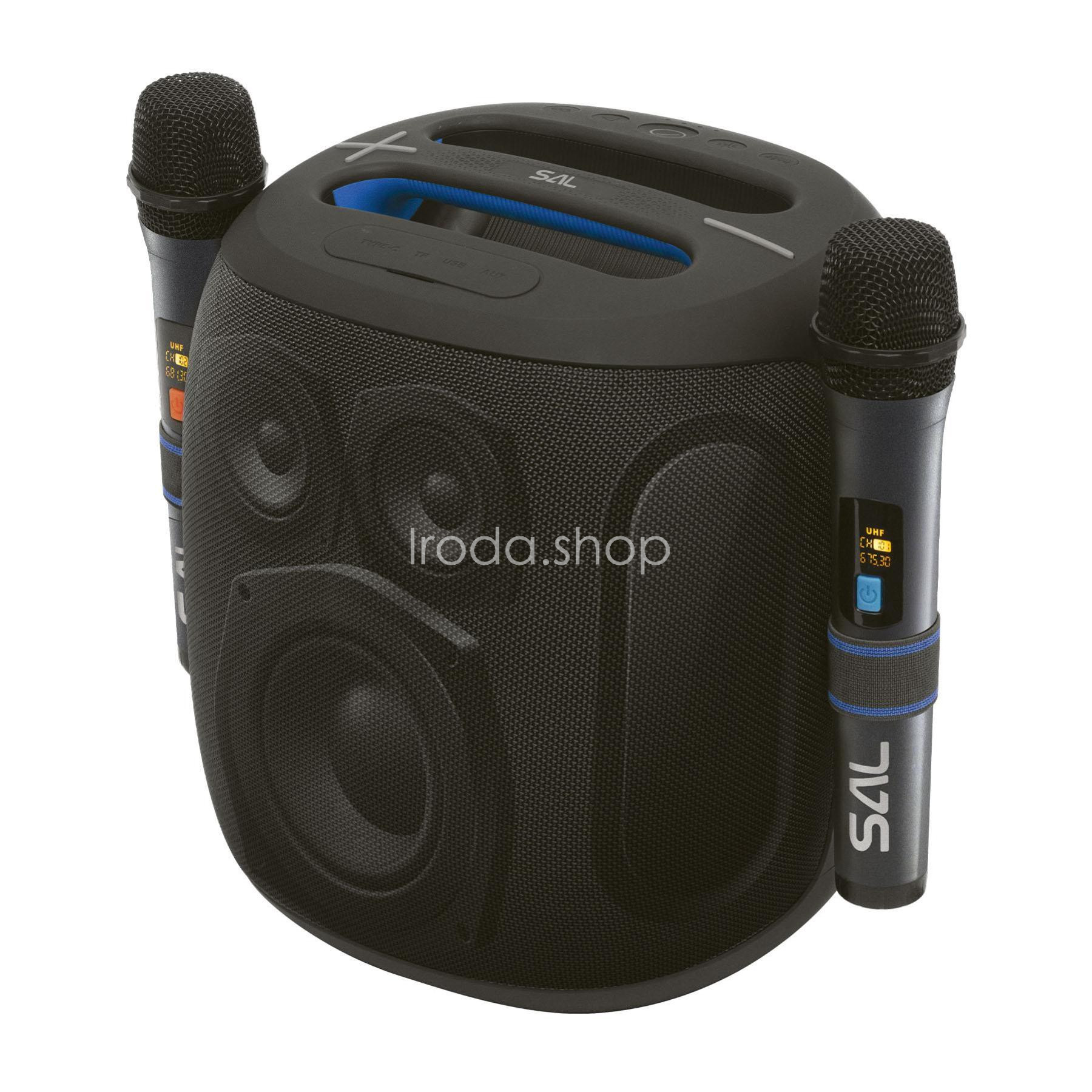 SAL PARCUBE boombox, 100 W, 2db vezeték nélküli mikrofon, 5db hangszóró, LED fényeffekt, IPX5 védelem, Bluetooth