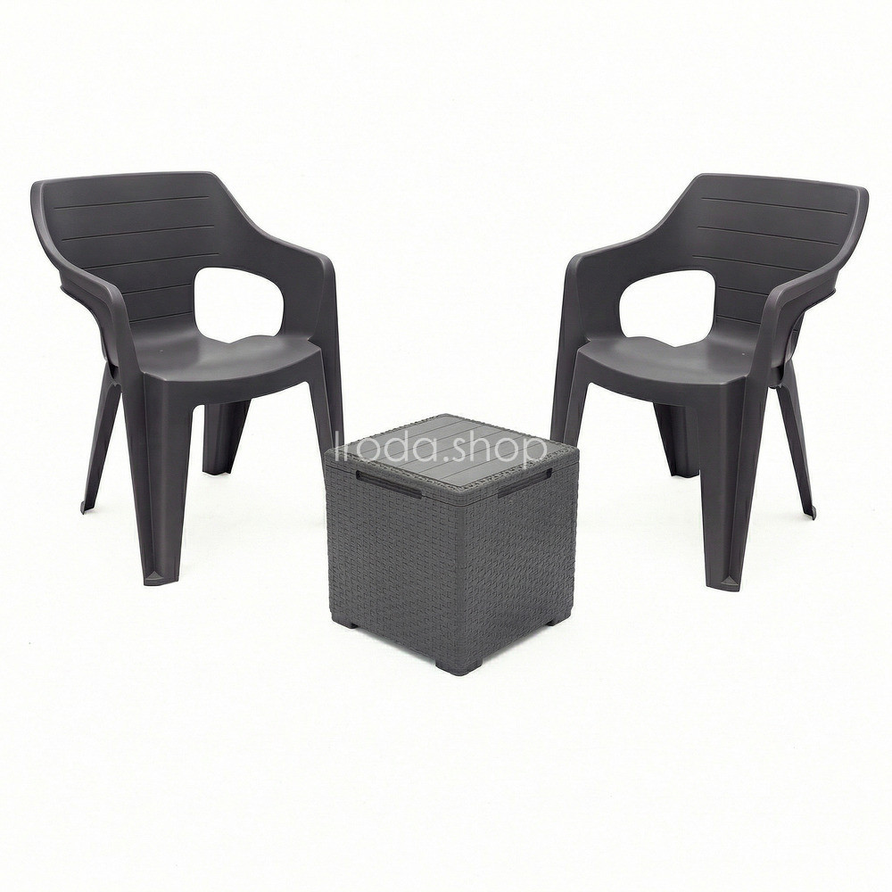 • 2 db Bilbao Lowback műanyag kartámaszos kerti szék grafit – 57 x 57 x 79 cm