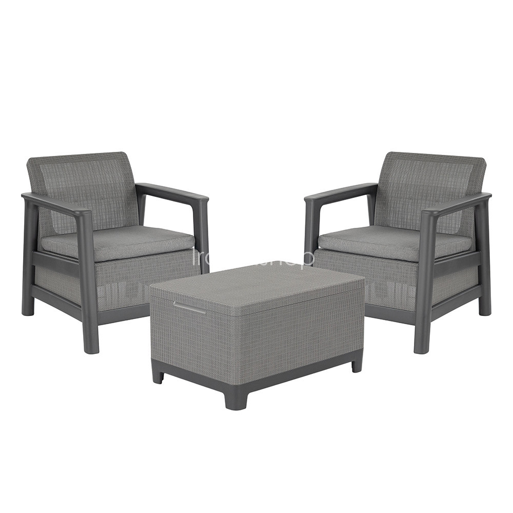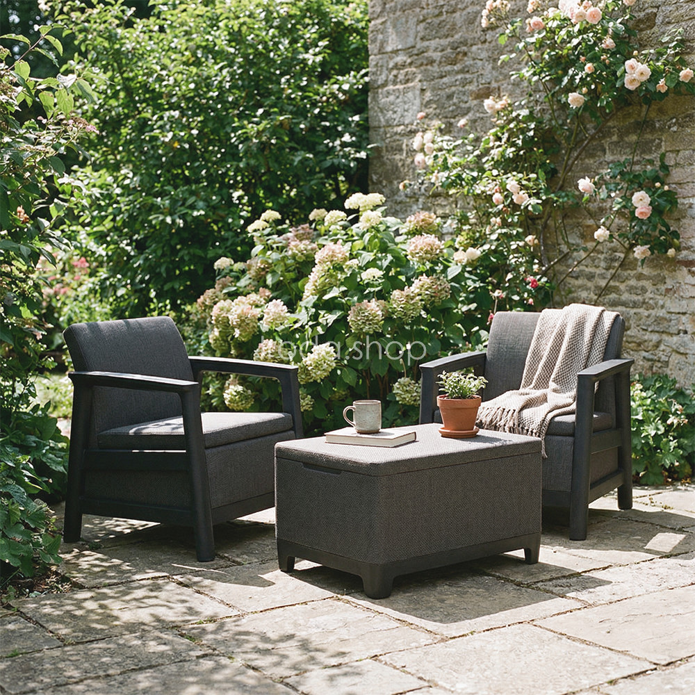 Ideális választás azok számára, akik grafit-hűvösszürke kerti bútor szettet keresnek, időjárásálló műanyag kültéri bútort szeretnének, kisebb teraszra vagy erkélyre is elhelyezhető kompakt megoldást választanának, illetve előnyben részesítik a tárolóval ellátott kerti asztalt. Stabil, modern és hosszú távon is kényelmes kültéri ülőgarnitúra.