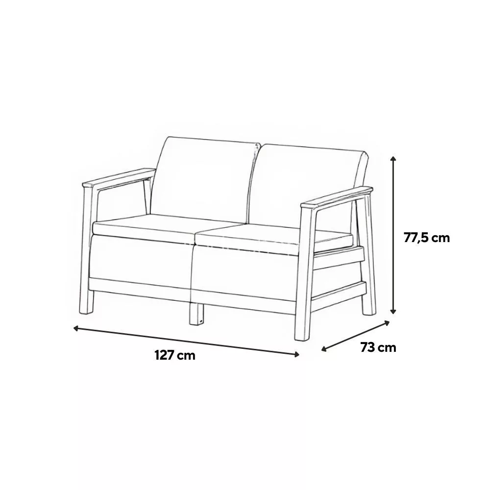 A szett kényelmes beszélgetősarkot alakít ki a kertben vagy a teraszon. Egységes, modern kültéri nappali hozható létre vele, miközben a tárolós asztal praktikus helyet biztosít a kiegészítőknek. Időjárásálló, gondozásmentes megoldás, amely rendezetten és átgondoltan formálja a kültéri teret.