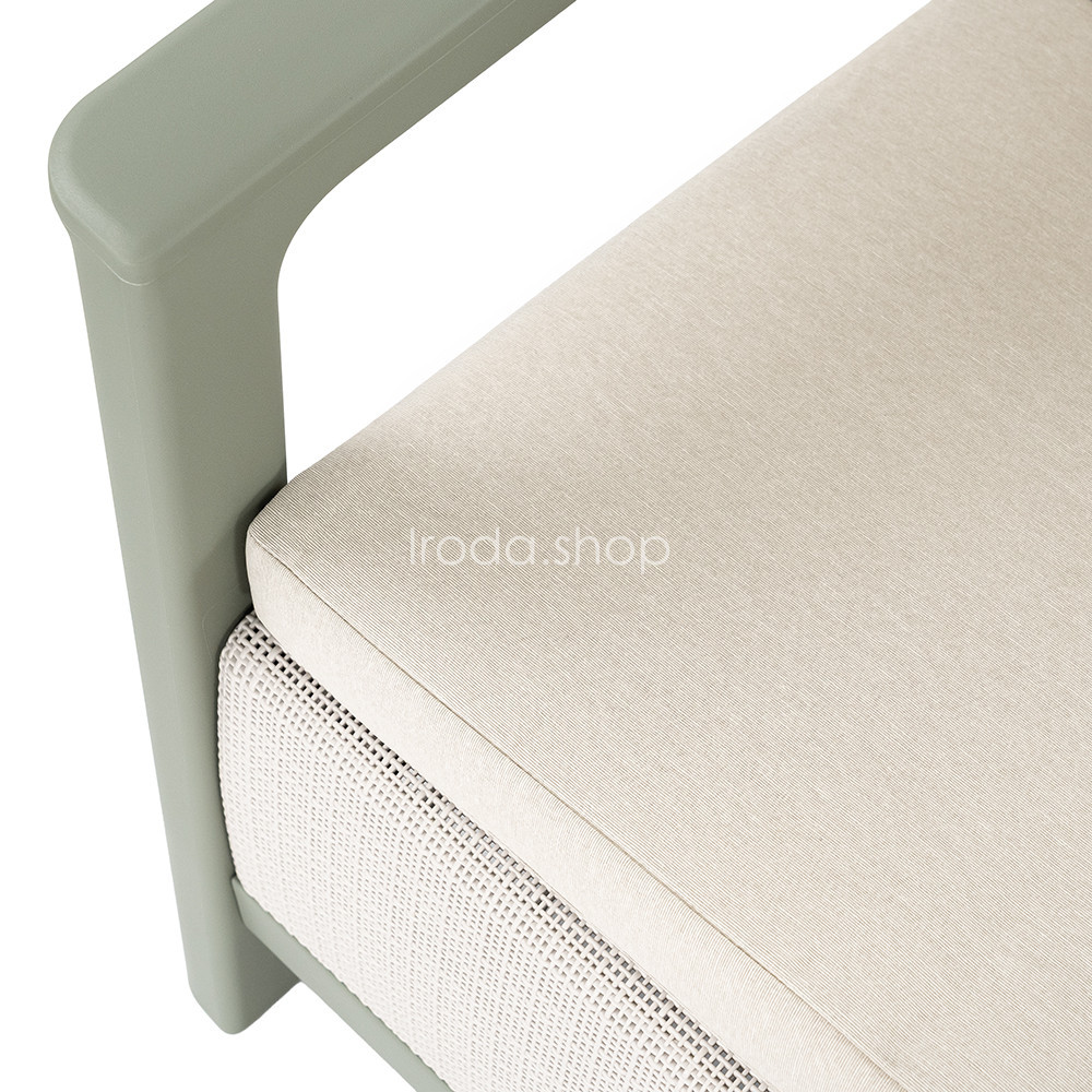 Scandi Linea kerti bútor szett jute tárolós asztallal – zsálya zöld-homok