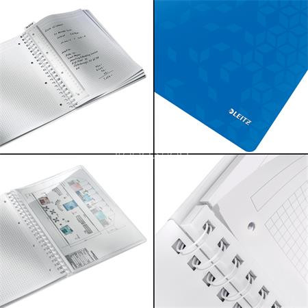 Spirálfüzet, A4, kockás, 80 lap, LEITZ "Wow", kék
