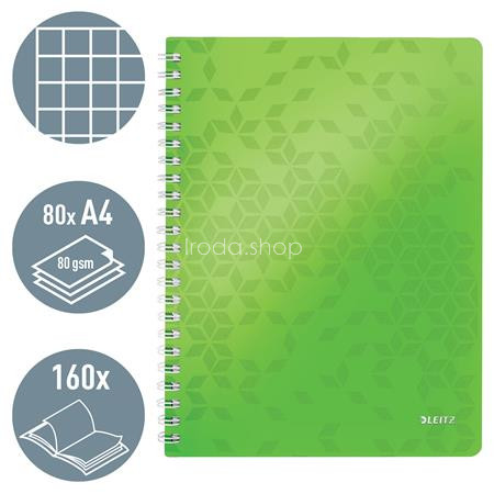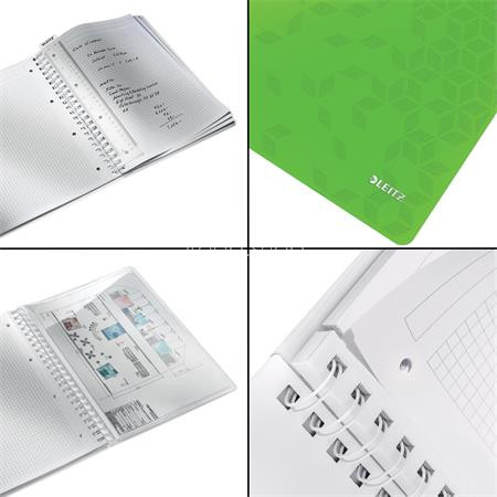 Spirálfüzet, A4, kockás, 80 lap, LEITZ "Wow", zöld