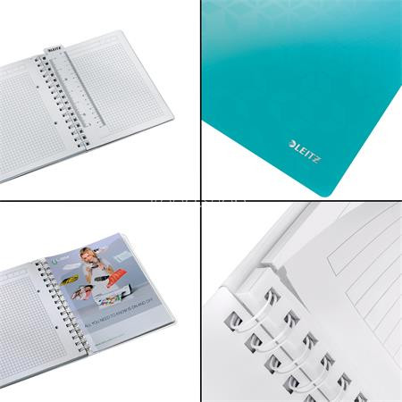 Spirálfüzet, A5, kockás, 80 lap, LEITZ "Wow", jégkék