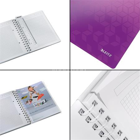 Spirálfüzet, A5, kockás, 80 lap, LEITZ "Wow", lila