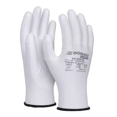 Szerelőkesztyű, PU, DONAU "Safety", 10/XL méret, fehér