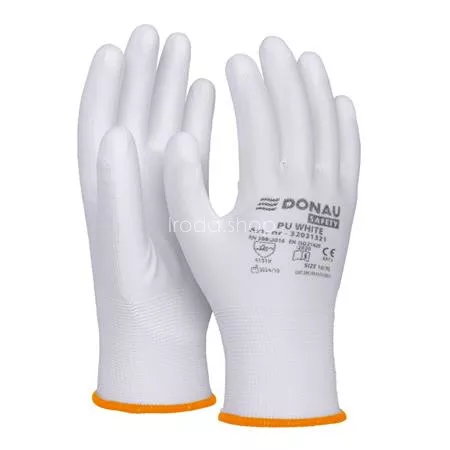 Szerelőkesztyű, PU, DONAU "Safety", 7/S méret, fehér