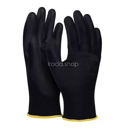 Szerelőkesztyű, PU, DONAU "Safety", 8/M méret, fekete