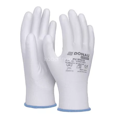 Szerelőkesztyű, PU, DONAU "Safety", 9/L méret, fehér
