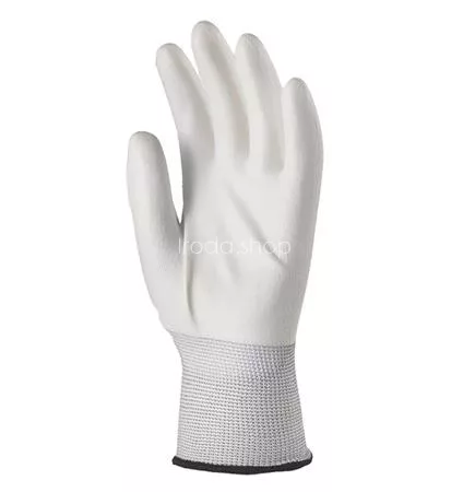 Tenyéren fehér poliuretánnal mártott. Fehér precíziós kesztyű