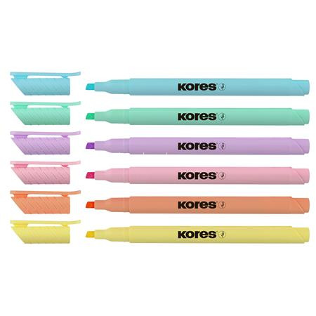 Szövegkiemelő készlet, 0,5-5 mm, KORES, 6 különböző pasztell szín