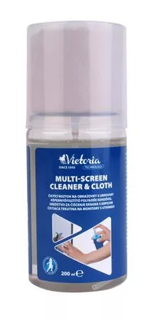 Tisztítófolyadék, képernyőhöz, pumpás, kendővel, 200 ml, VICTORIA TECHNOLOGY