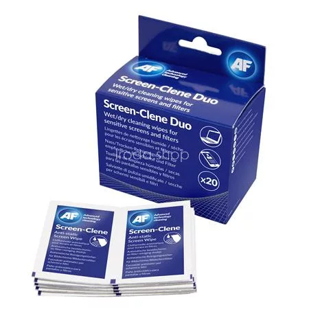 Tisztítókendő, képernyőhöz, 20 db nedves-száraz kendőpár, AF "Screen-Clene Duo"