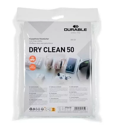 Tisztítókendő, képernyőhöz, 50 db, DURABLE "DRY CLEAN 50", fehér
