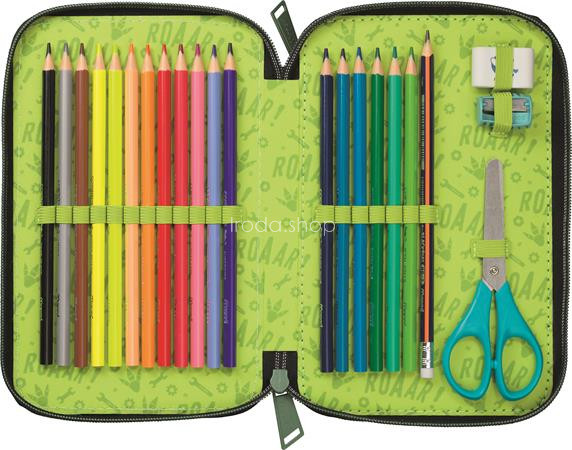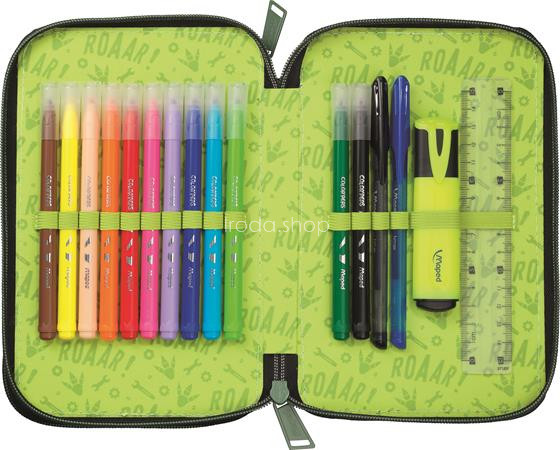 Tolltartó, töltött, 2 emeletes, cipzáras, MAPED, dinoszaurusz