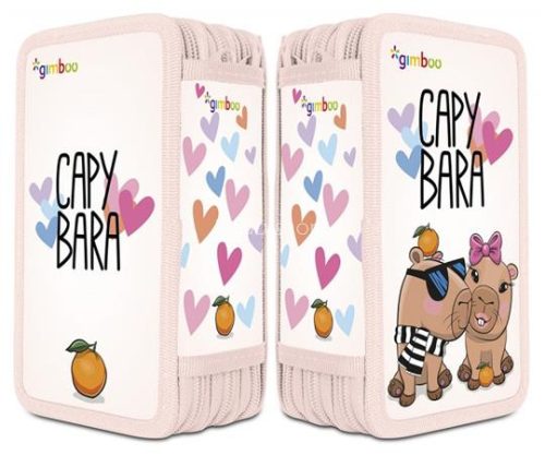 Tolltartó, töltött, 3 emeletes, cipzáras, "Gimboo", rózsaszín, kapibara