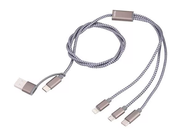 Töltőkábel 3 in 1, 1 m, TROIKA "Dreizack", szürke