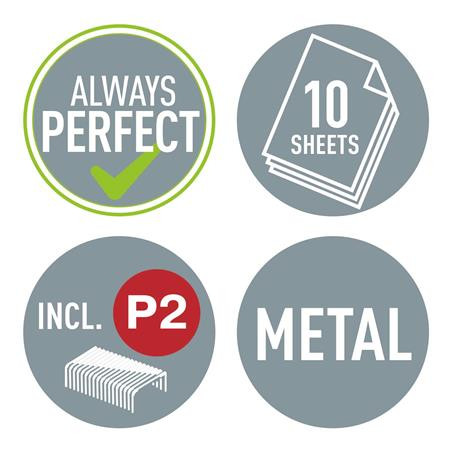 - No. 10 méretű Leitz Power Performance P2 tűzőkapoccsal használható (E55770000)
