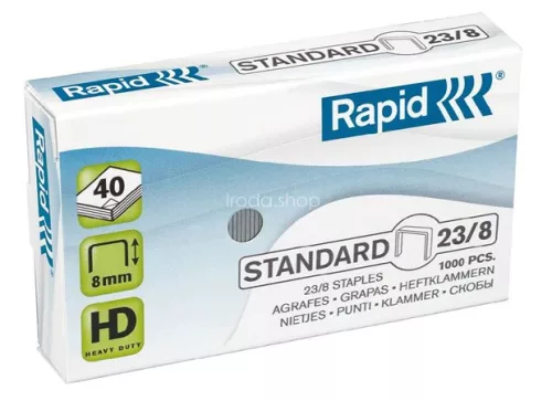 - nagyteljesítményű, galvanizált tűzőkapocs - 10-40 lap tűzéséhez (80 g-os papír) - STANDARD erősség, melyet a csomagoláson zöld szín jelöl - 8 mm-es szárhossz - galvanizált finomhuzal a könnyű és kényelmes használatért - éles szárak a pontos tűzés érdekében