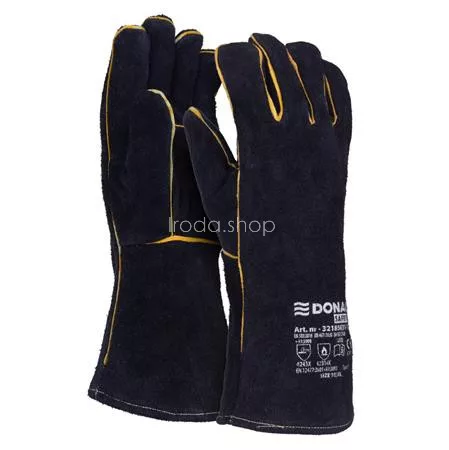 Védőkesztyű, MIG, marhabőr, DONAU "Safety", 10/XL méret, fekete