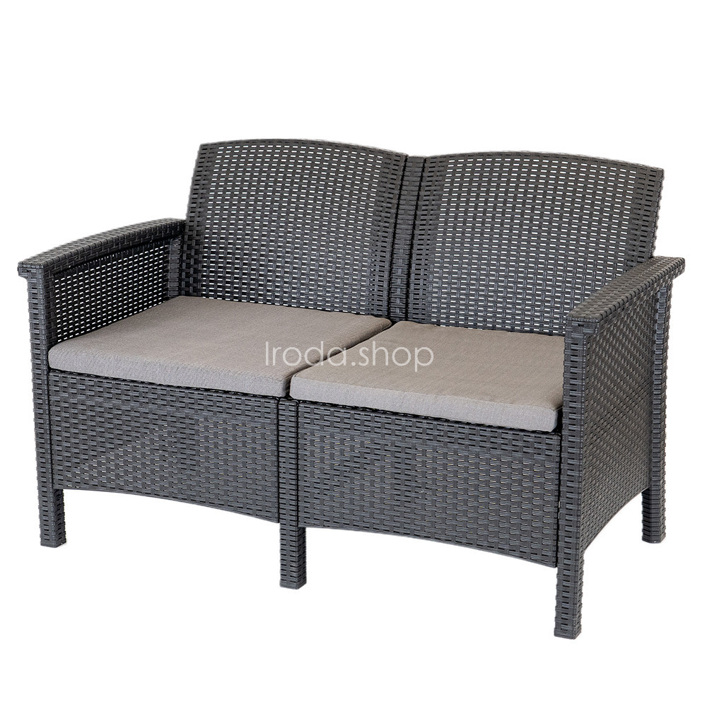 A Venus 2 üléses kerti kanapé visszafogott grafit színben készül. Az ülő párnák néhány árnyalattal világosabbak, ami egyedülálló hatást és elenganciát kölcsönöz.