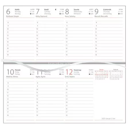 időbeosztás: órás, 8-18.00 h selymes tapintású műbőr borító lap típusa 70 g, fehér ofszet sarokperforációval szürke-vörös nyomat hasznos információk éves tervező telefonregiszter/ jegyzet oldalak