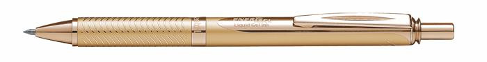Zseléstoll, 0,35 mm, nyomógombos, arany tolltest, PENTEL "EnerGel BL-407" fekete, ajándék kék tollbetéttel
