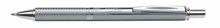 Zseléstoll, 0,35 mm, nyomógombos, ezüst tolltest, PENTEL "EnerGel BL-407" fekete, ajándék kék tollbetéttel