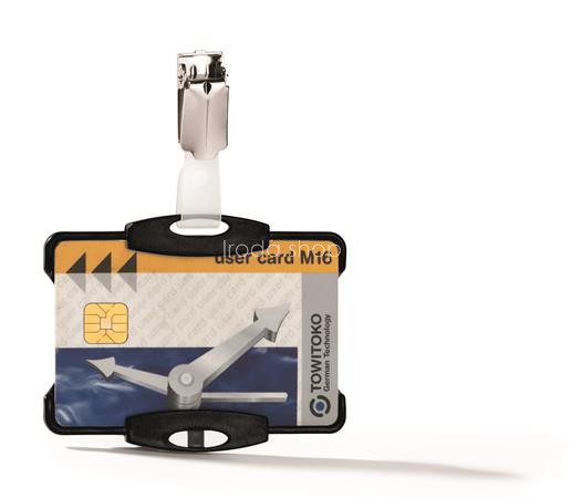 Azonosítókártya-tartó, 54x85 mm, csiptetővel, DURABLE, fekete