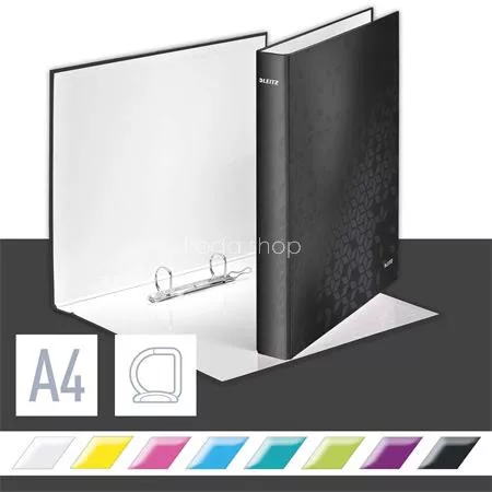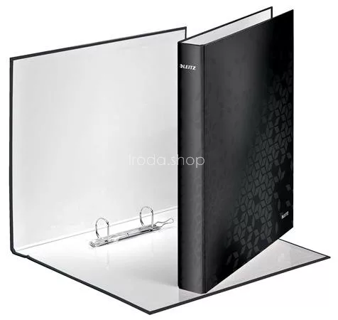Gyűrűs könyv, 2 gyűrű, D alakú, 40 mm, A4 Maxi, karton, LEITZ "Wow", fekete